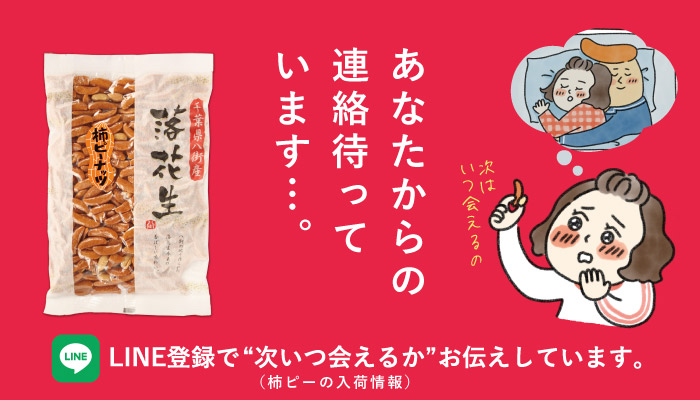 通販では注文を受けてから製造した柿ピーをお届けします。できたての美味しさを味わえるよう、受注してからの製造するため、出荷までお時間をいただく場合があります。